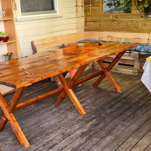Materialer: heltre teak med vannbasert finish