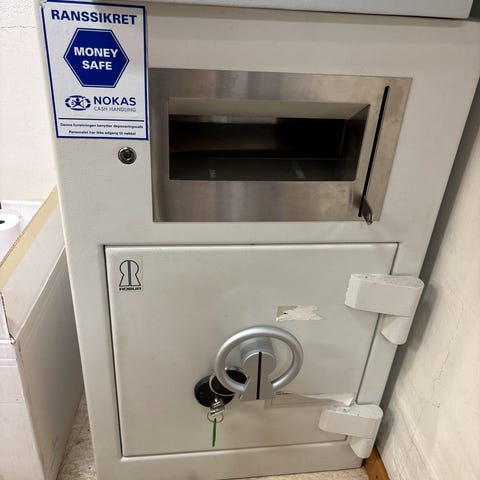 En enkel deponeringssafe for mindre beløp. Leveres med deponeringsskuff og elektronisk kodelås på safedør.