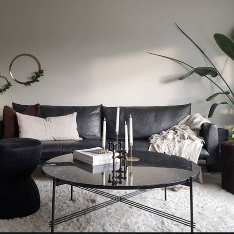 Basen i Sort Negro Marquina marmor, med cylinderformet bordtopp i sort gloss lakkert HDF. MÅL: B:32, D:30, H:40