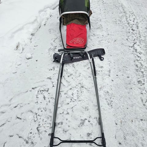 Leveres med veltebøyle, vindskjerm, ryggstøtte, parallelldrag og sele med kryssremmer. Skal pulken transporteres på taket av bilen, anbefaler vi å kjøpe med transportpose, da holder du pulken ren. Skitten pulk og glideflater gjør at pulken blir tyngre å trekke.