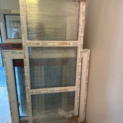 limtreene har ligget på lager under halvtak, men uten plast så mange av dem har blitt litt værgrå, egner seg ikke som synlig innvendig konstruksjon pga litt varierende utseende.