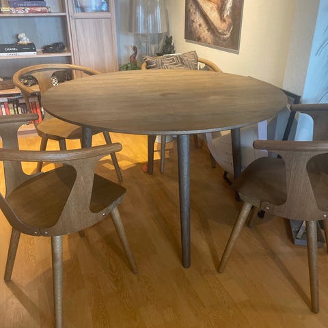 Vi har bordet på lager i brun for omgående levering. (pluss mye annet i serien til Karmøy, spør oss :)