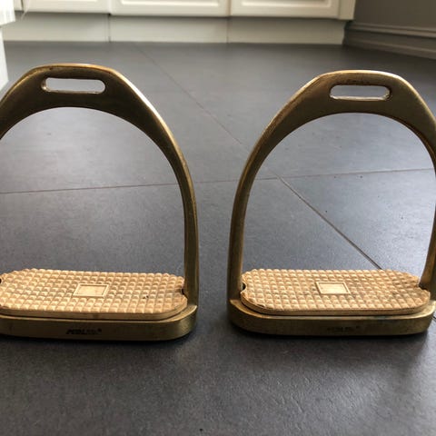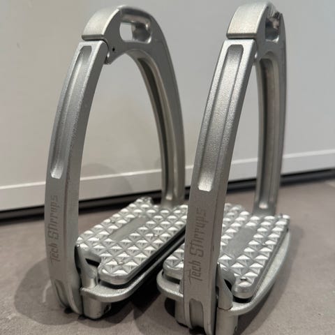 S-stigbøyler i elegant pistolmetallfarget stål. S-formen på stigbøylene sikrer optimal plassering av rytterens føtter og gir økt sikkerhet under kjøring. Leveres med svart gummiinnlegg.