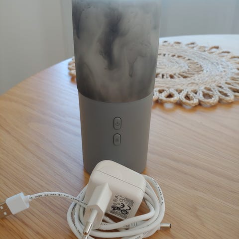 Det sitter en liten vifte inne i apparatet som sprer duften ut i rommet når du plugger i ledningen. Velg mellom flere forskjellige innstillnger på siden av apparatet.