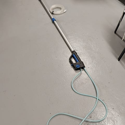 ? Såpebeholder og 2,5 m kjemislange med filter for optimal såpepåføring