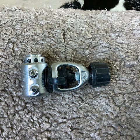 Håndtaket, som måler 12 cm, er laget av sklisikkert polymermateriale, noe som sikrer et sikkert grep selv under våte forhold. Den ergonomiske utformingen gir komfort under lange dykk, og håndtakets tekstur forhindrer utilsiktet glidning.