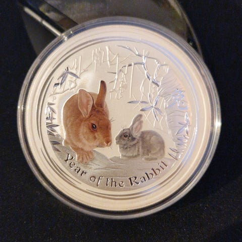 Vekt: 31,1 gram (1 troy oz rent sølv)