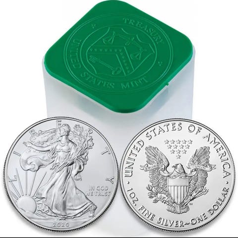 Monsterboks med 500 stk Sølv American Silver Eagle 1 oz BU 2025 i forseglet Monsterboks fra US Mint. Dette er en meget populær og anerkjent sølvbullion blant sølvinvestorer og myntsamlere. Monsterboksen består av 25 forseglede tuber à 20 mynter med et totalt sølvinnhold på 500 troy oz.