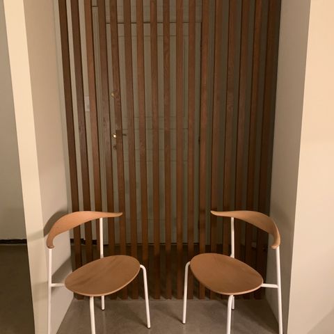 6 stk Arne Jacobsen. model 3107 ''Syveren fuldpolstret sort semianilin skinn. Alle understel er polert opp, tilført nye sko og nye sete dempere, stolene er restaurert på fabrikken i Danmark. Stolene er som ''nye''