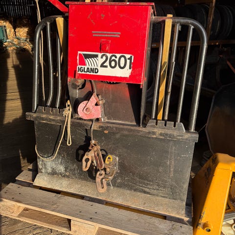 Stor lunne panne med ekstra oppheng for tømmer og kniv for kapping av ståltau