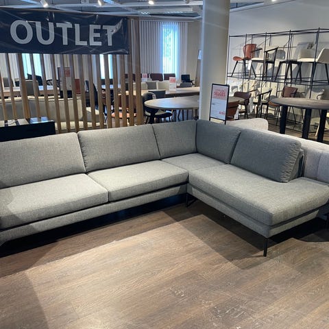 Flott og pent brukt Levi hjørnesofa med avtagbare trekk på samtlige puter. Sofaen er kledd i et stilrent, strukturert stoff som passer perfekt inn i moderne hjem. Den er nylig renset og klar for ny eier.