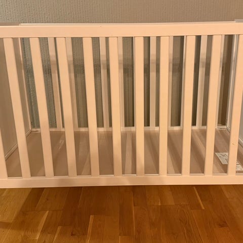Skinner for økt sikkerhet: Denne sengerammen er utstyrt med sideskinner for å forhindre at barnet ditt faller ut av sengen når det sover.
