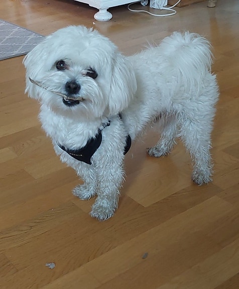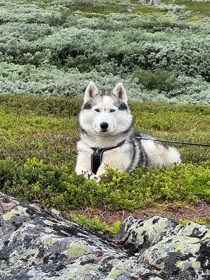 Røytefri. God helse. Chippet og forsikret. Helsesjekket, vaksinert og tatt tannrens april i år. Kosete til flokken og andre han kjenner. Vil gjerne ligge i sofaen eller sovehytta si. Bjeffer ved besøk. Uvant med barn. Vant med opptil 6 timer hjemme alene. Overreagerer på fremmede hunder. Kan bli venn med andre hunder med tid og tålmod. Har vært en del løs på egnede steder. Vant med bilkjøring, men litt ubekvem. Er hos eier nord i Trøndelag.