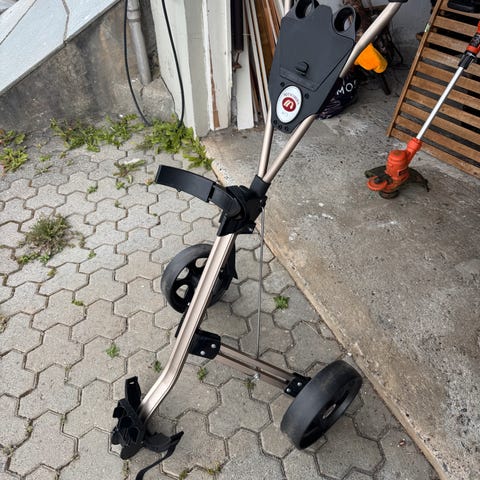 Flott og lett 2-hjuls golftralle. Justerbar lengde så den kan tilpasses høyden til brukeren.