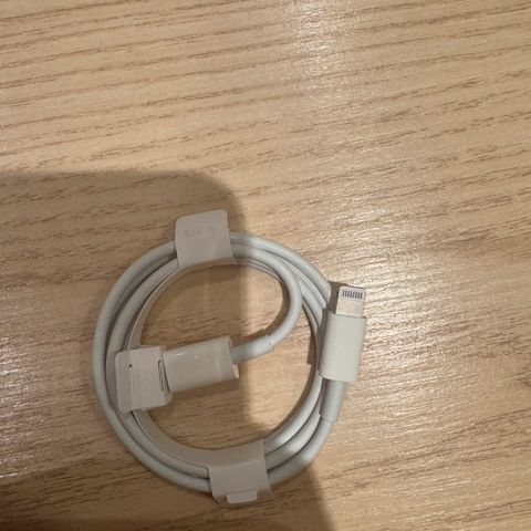 Original Apple hurgigladekabel (USB-C). Tatt ut fra original telefon-eske, og derfor er det ikke separat eske på laderen, men altså nytt og originalt, så ingen forskjell på produktet i forhold til det som kommer i vanlig butikk-forpakning.