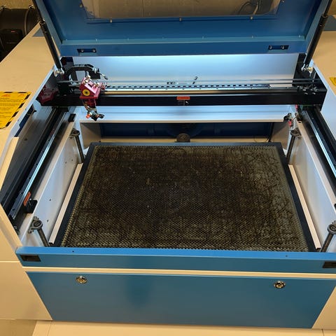HOLZMANN CNC-lasergraveringskutter CL4060 – presis og allsidig HOLZMANN CL4060 er en kraftig CO?-laser for gravering og kutting av ikke-metalliske materialer som tre, lær, akryl, glass og plast. Med et arbeidsområde på 400 x 600 mm og en lasereffekt på opptil 80 watt tilbyr maskinen høypresisjonsskjæreresultater og perfekte graveringer. Takket være kompatibel programvare (f.eks. RDWorks) kan du enkelt lage designet ditt på datamaskinen, koble det til maskinen, overføre det og kutte eller gravere det presist. Ideell for profesjonelle bruksområder innen reklameteknologi, modellering, gjør-det-selv og industri.