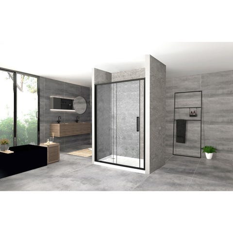 Den svart-belagte rammen og sidepanelene av ESG (enkeltlags sikkerhetsglass) gir dusjkabinen et rent utseende, og vil gi badet en elegant stil. Dette dusjkabinettet er designet med sammenleggbare dører for enkel tilgang. Montering og tilpasning er enkel med monteringsmateriale som er inkludert.