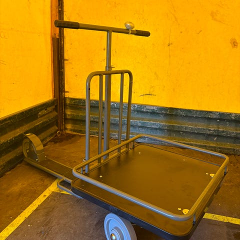 Sykkelen har to 200 x 50 mm kulelagrede hjul i massiv gummi med gummibane framme og et 1400 x 40 mm luftgummihjul bak