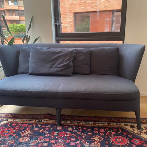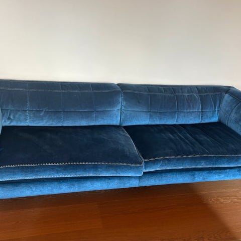 Det medfølger 2 store ryggputer i samme stoff som sofaen. Den mørkeblå velurputen som viser på bildene er ikke inkludert i prisen, men kan evt. kjøpes i tillegg. Salongbordet, Loto, er også fra Maxalto - se egen finn-annonse.