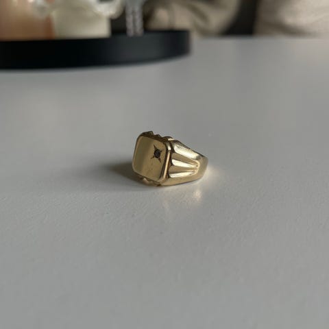 Vintage signetring til herre med sort stein. Ringen er i gult gull.