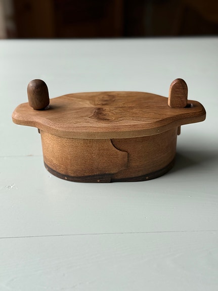 Nydelig håndlagde spole-skrin av kirsebær-tre.