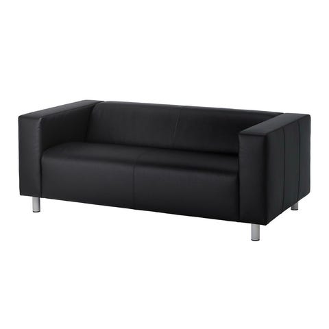 1 stk - Ikea Klippan sofa 2-seter, sortskinn - BRUKTE KONTORMØBLER