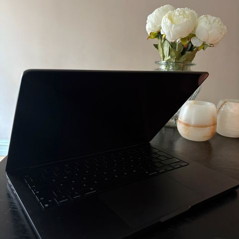MacBook pro i pen stand (kun litt bruksmerker på undersiden av pc-en)
