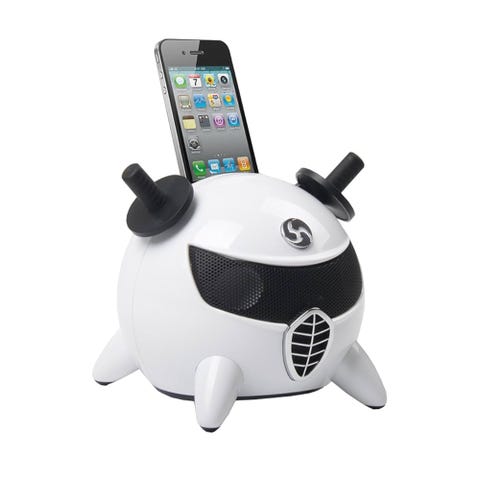 Praktisk kontroller på toppen av masterhøyttaleren som lar deg velge kilde, styre volum.