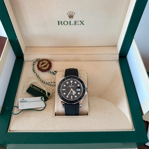 Selger en fantastisk Rolex Yacht-Master 40, ref. 116621, med den ettertraktede kombinasjonen av 18 karat Everose gull og Oystersteel. Denne modellen kombinerer sporty eleganse med klassisk luksus og er et perfekt valg både til sjø og storby.