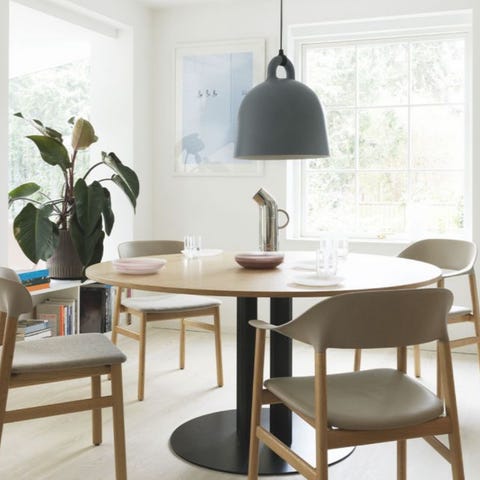 Denne modellen har en diameter på 60 cm og egner seg godt over møtebord, spisebord eller i sosiale soner der man ønsker å kombinere funksjonell belysning med et tydelig designuttrykk.