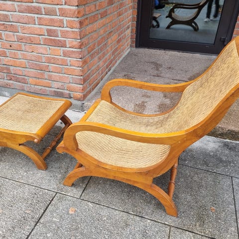 "Slipper chair" og fotskammel/krakk fra spansk Valenti!Samleobjekt!