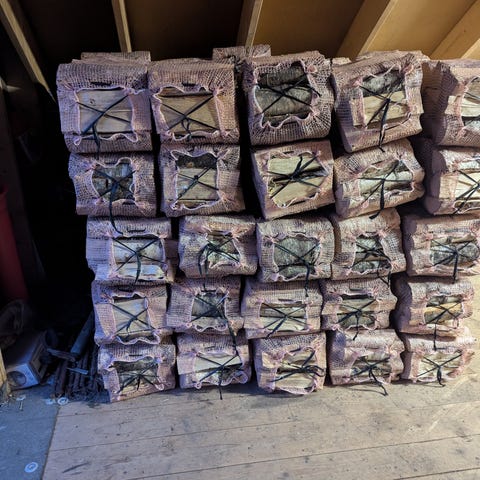 God og tørr bjørkeved og eikeved.