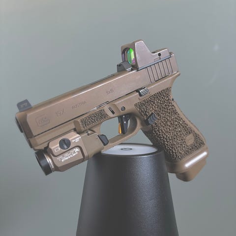 The frame features the GLOCK Slim Mounting Rail for mounting tactical accessories and incorporates elements of the Slimline series such the short trigger distance, a frame with a built-in beavertail, a reversible magazine catch and the incredibly accurate, match-grade GLOCK Marksman Barrel (GMB) of the Gen5 series. The G48 Rail also features precision-milled front serrations.