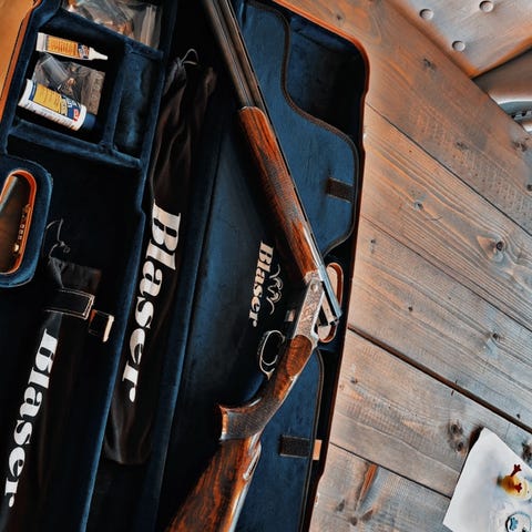 Hel og fin Blaser med koffert og 5 choker. 81 cm løp