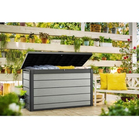 Denne putekassen i PE-rotting vil være ideell for å lagre tepper, pynteputer, hageputer, bøker og andre gjenstander som ligger rundt i hagen eller på terrassen.