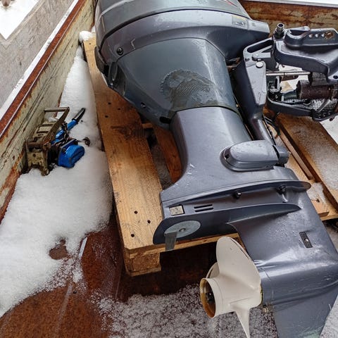 Helt komplett. Legger ut hva som er solgt etter hvert. Forgasser rekken skal være overhalt. Selges i deler pga tæring på adapterplaten. Har også stålpropell (10 1/2x13) Har video av motor i gang, sendes på forespørsel.