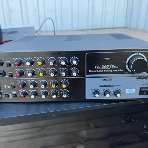 2 x 240 Watts PRO-förstärkare med MP3 spelare, fjärrkontroll, USB, SD och AUX samt 6 RCA för TV, laptop, dator. 10 reglage. Blå cool LED frontbelysning.