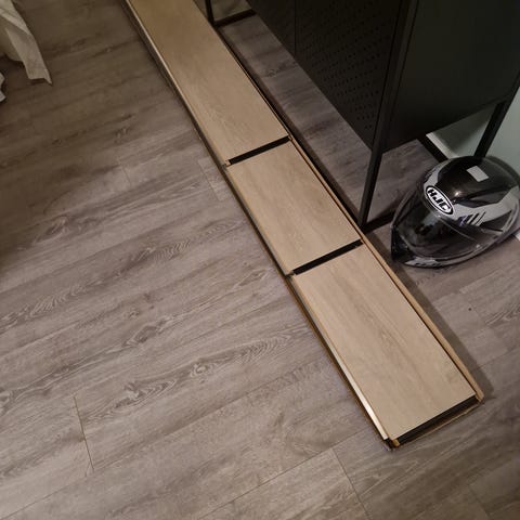 Høytrykkslaminat med underlag 2410x241x1,3+2 mm. pris 399.- pr. kvm.