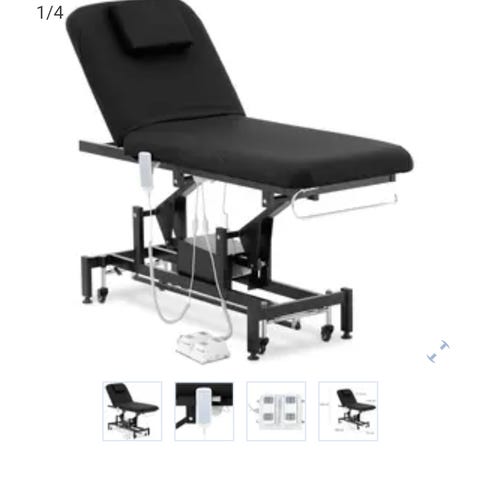 Puten, polstret med skum med høy tetthet, er svært komfortabel og motstandsdyktig mot desinfeksjonsmidler og massasjeolje. Hodestøtten og armstøttene er justerbare, det samme er høyden på bordet, noe som gjør at brukeren kan ligge komfortabelt og massasjeterapeuten kan velge ønsket arbeidshøyde.