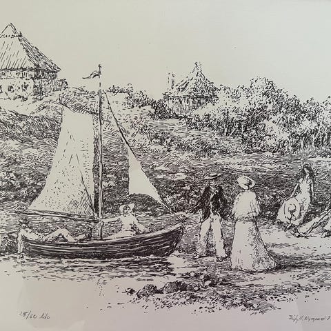 Politisk kariktaturtegning fra 1984. Bomann. Signert. Litografi eller trykk. 30 cm x 24,5 cm brutto. Noen som kjenner igjen personene? Fra Willochs regjering han til venstre? Hentes i Oslo. Kan også sendes. L15.