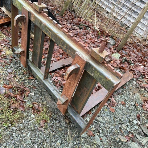 Selger en Palle gaffel med S60 feste, den er bare noen år gammel, men vi har greid å overbelaste gafler slik at innfestning er ligg bøyd.