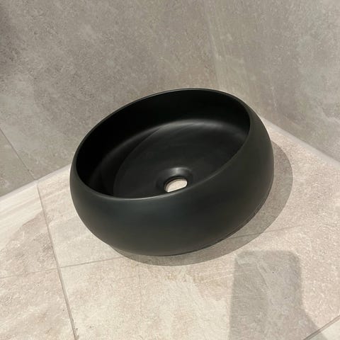 Pesquera bolleservant med betong overflate har en moderne og minimalistisk stil som passer perfekt til moderne og industrielle baderom.