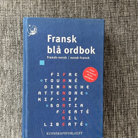 Fransk blå ordbok. Fransk-norsk. Norsk-fransk. Kunnskapsforlaget. Aschehoug. 4. utgave. 5. opplag 2009. Hentes eller sendes.