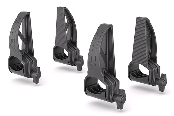 Anbefalt tilbehør er en lastestopp som hindrer lasten i å skli sidelengs, inkludert i settet. Som ekstrautstyr finnes også et låsesett for føttene.