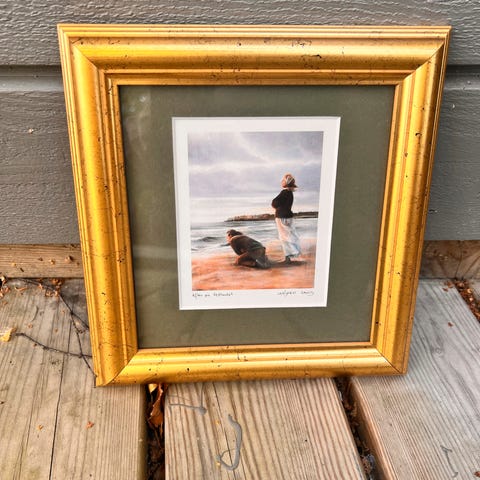 Astri Tønnesen Berg. To små kunstverk. Hver i størrelse 13 cm x 18 cm brutto. Med glass og ramme. Hentes i Oslo eller sendes. Lager 129.