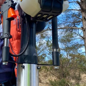 Effektiv og kraftig stolpebanker som løser de fleste jobber på en sikker måte. Mindre belastning på kroppen enn å bruke en vanlig slegge, og i tillegg sparer en tid. Den har en 4 takts motor med 2 stykk adapter på 100 og 45 mm.