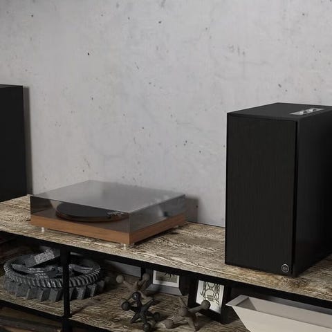 Komplett anlegg med Rega Planar 1 platespiller, io forsterker og Kyte høyttalere