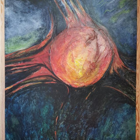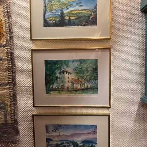 Skyer over bondelandskap. Glass og ramme. Usignert. 19 cm x 17 cm brutto. 10 cm x 9 cm netto. Lager 121.