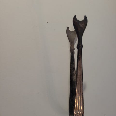Spadene er altså håndlaget av August Fleron i 1894, butikken hans holdt til i København fra 1893 til 1910. Hvem som tok over etter hans død i 1901, vet vi ikke.