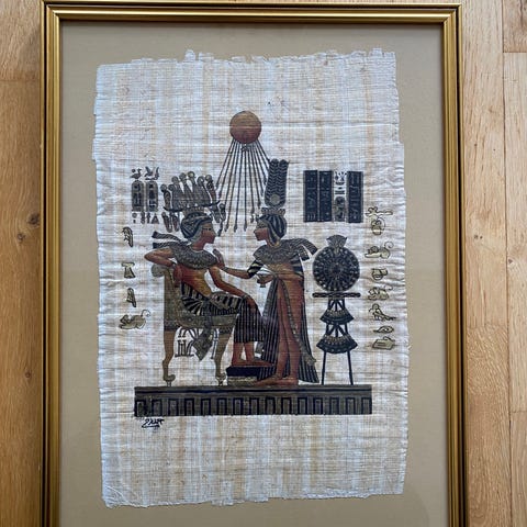 Papyrustrykk. Signert. Egyptisk